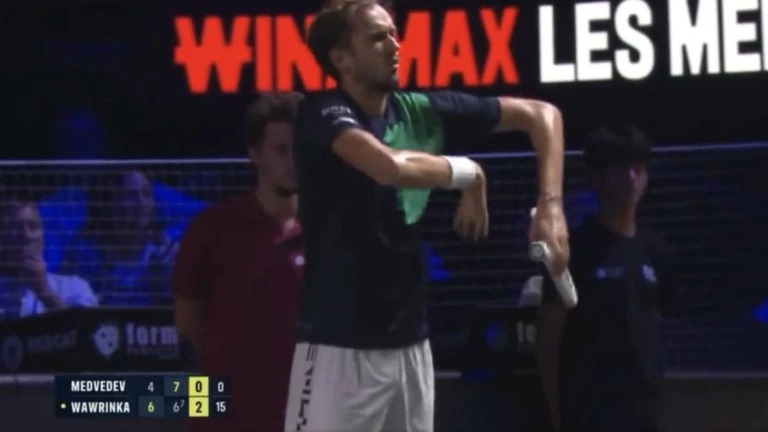 El público del Metz abucheó a Medvedev por golpear su raqueta contra el suelo. El ruso respondió a los silbidos dirigiéndose a los espectadores haciendo el gesto del mono.