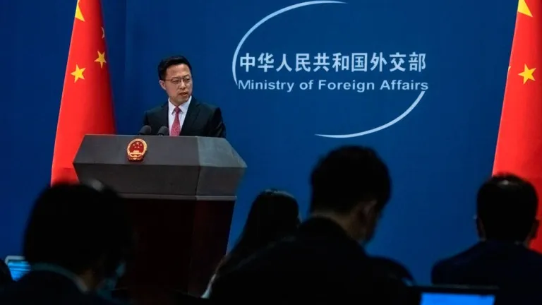 Zhao Lijian, portavoz del Ministerio de Asuntos Exteriores de China, se dirige a la prensa. EFE