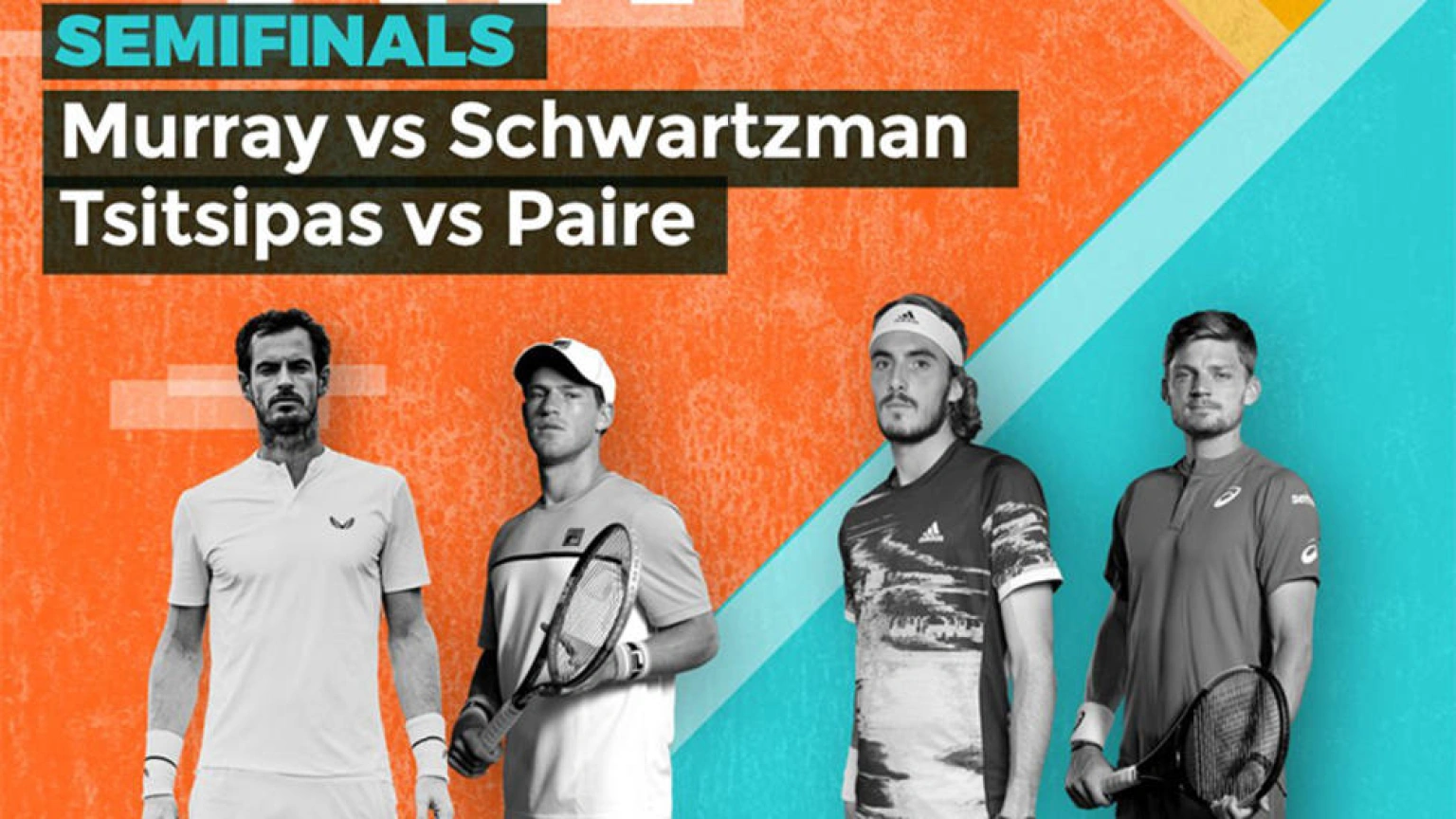 En el último partido, el belga David Goffin ganó al francés Benoit Paire, al que ganó 6-0 y no dio la oportunidad de lograr ni un solo juego.Los emparejamientos de semifinales son Murray contra Schwartzman y Tsitsipas frente a Goffin.