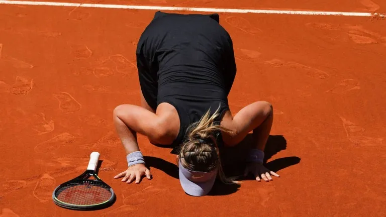 Paula Badosa besa la arena de Madrid durante su reciente participación en el Mutua Madrid Open