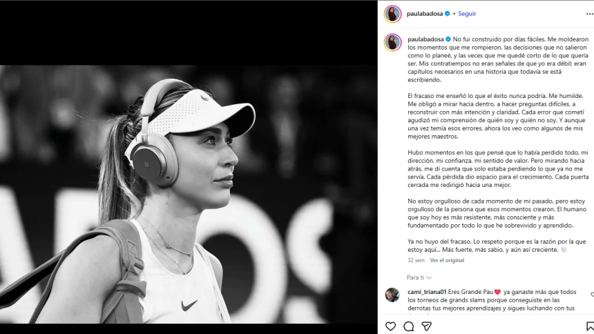 La tenista española Paula Badosa reconoció que está "lejos" de su "mejor versión", pero afirmó que "esa versión sigue dentro" de ella, y que quiere ser "recordada por demostrar que fue capaz de salir", en una publicación realizada en sus redes sociales después de quedarse fuera del top 100 mundial.