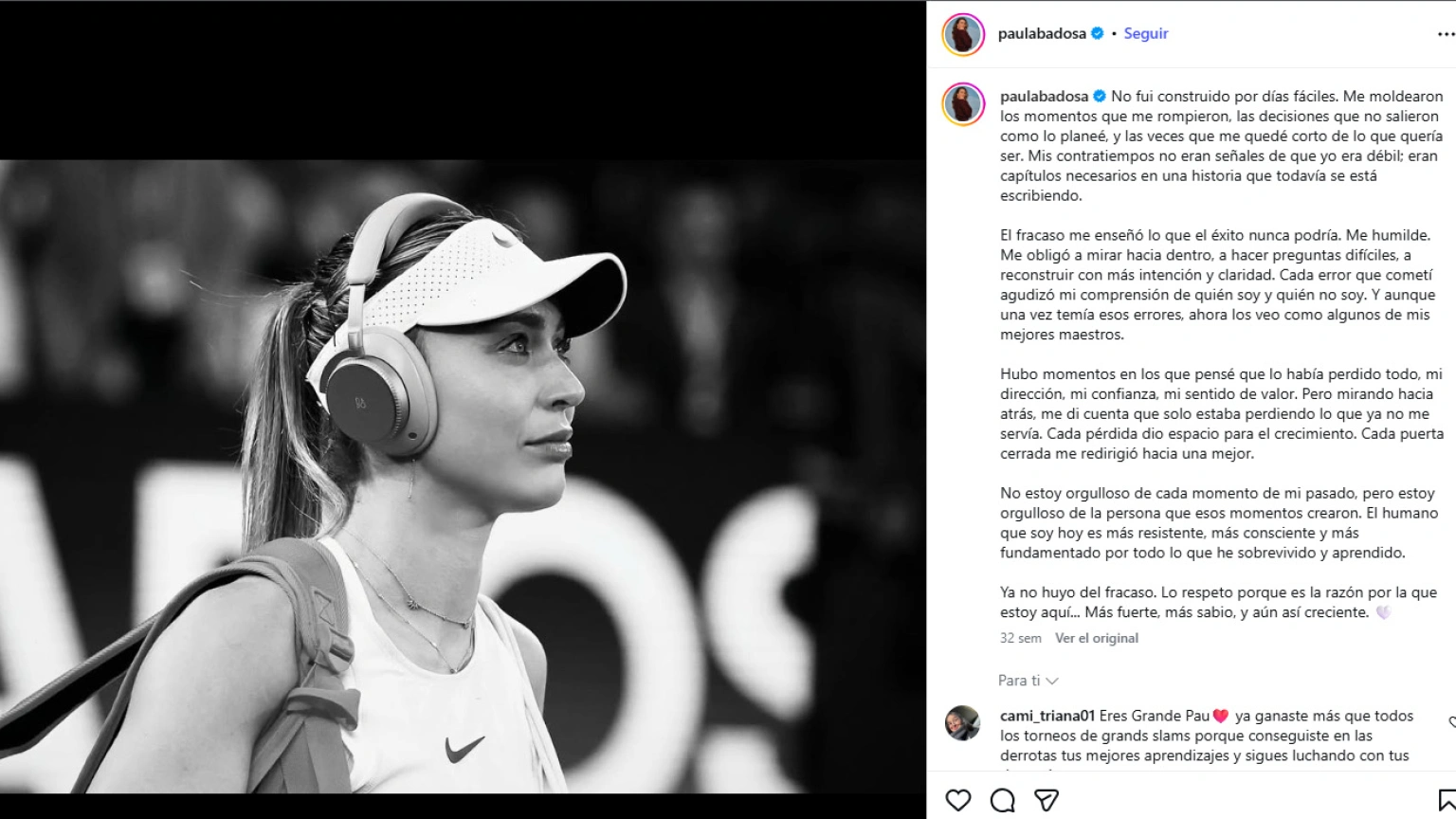 "Paula no está de vuelta... pero lo estará", concluyó su publicación la tenista, que afronta ahora la temporada de tierra batida.