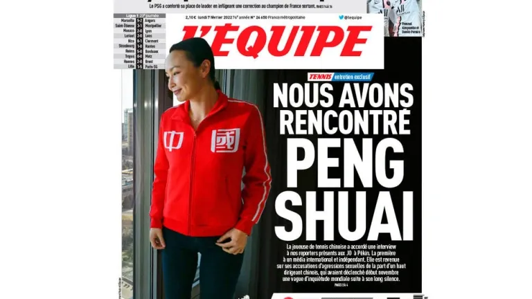 Peng hizo las declaraciones en una entrevista con el periódico deportivo francés "L'Equipe", la primera que concede a un medio occidental tras desvelar en las redes sociales chinas en noviembre pasado que mantuvo durante años un intermitente idilio amoroso con el ex viceprimer ministro chino Zhang Gaoli, a quien acusó de haber abusado sexualmente de ella en una ocasión.