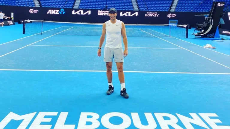 El campeón español se fue a la pista del Melbourne Park y publicó una foto con un mensaje claro: "Don't tell anyone... here I am" (No se lo digas a nadie... ya estoy aquí).