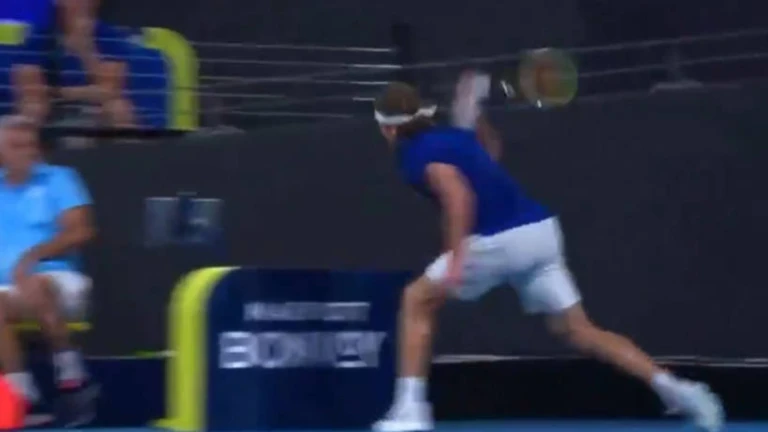 La raqueta del número uno griego llegó a rozar el brazo de su padre, quien mostró gestos de dolor tras el pequeño incidente. Tsitsipas acabó perdiendo la contienda ante el jugador de Canberra por 7-6(7), 6-7(3) y 7-6(5) en un partido que duró dos horas y media.