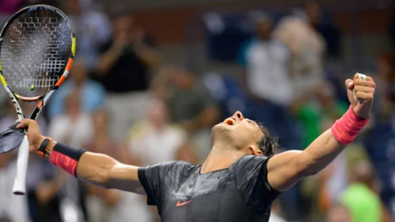 Rafa Nadal alza los brazos para celebrar su victoria en la primera ronda del US Open. Reuters.