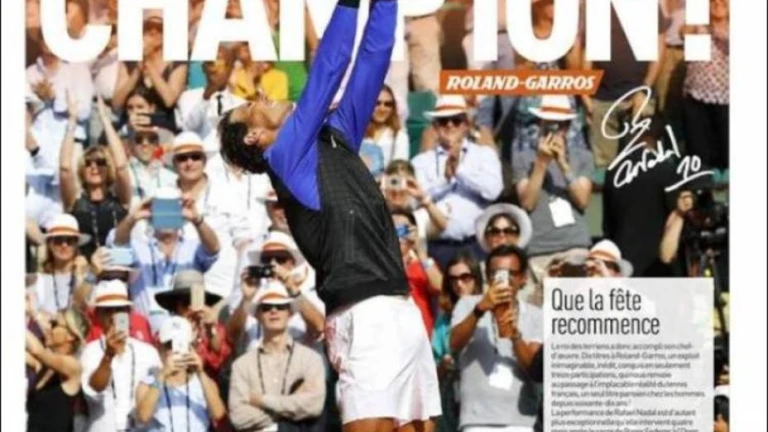 "Nadal 10, el extraterrestre" es el título que aparece en la portada de "La Gazzetta dello Sport", acompañado por una foto del tenista español que abraza el décimo trofeo del Abierto parisino.