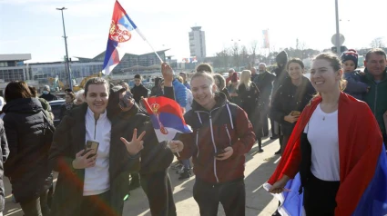 Decenas de seguidores esperaron la llegada de Djokovic a Belgrado