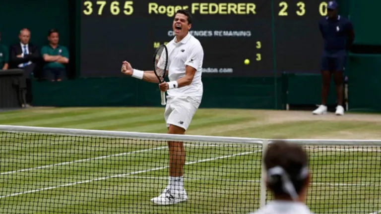 Milos Raonic ha vencido a Roger Federer (6-3, 6-7, 4-6, 7-5 y 6-3) y se enfrentará por el título el domingo a Andy Murray, que se ha desecho de Berdych (6-3, 6-3 y 6-3).