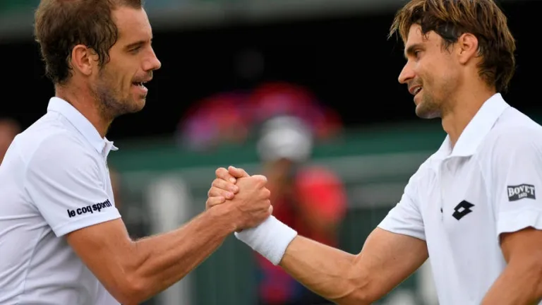 David Ferrer se saluda con Richard Gasquet en Wimbledon. REUTERS
