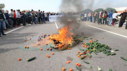 Los representantes de las organizaciones agrarias hablan en la manifestación convocada en El Ejido.