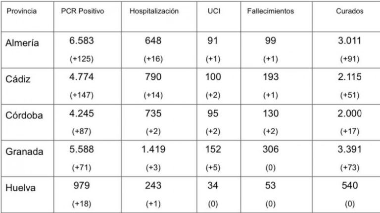Última hora en Almería. 125 nuevos positivos de la Covid-19 en la provincia en las últimas 24 horas. Con una persona fallecida. 91 curados.