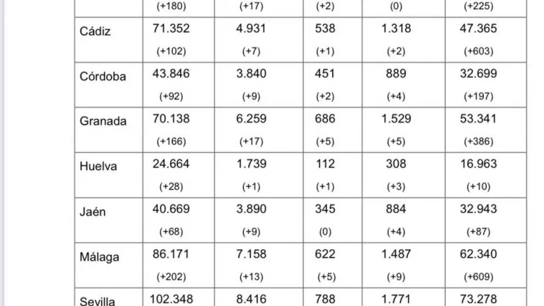 Este viernes, Almería es la tercera con más nuevos positivos de toda Andalucía, solamente por detrás de Sevilla (227) y Málaga (202). En cuanto a los curados, por delante están Málaga (609), Cádiz (603), Sevilla (399) y Granada (386).