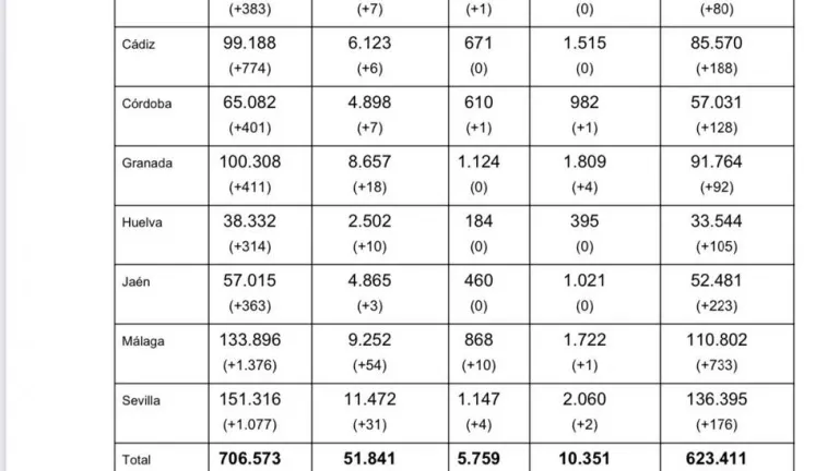 En cuanto al número de curados, han sido 80 en las últimas 24 horas. De nuevo, un día más, se elevan los casos activos, que roza ya los 5.000. Un aspecto que, también, se está notando en los ingresos hospitalarios. Según los datos facilitados por la Junta de Andalucía, hay en los tres hospitales de referencia (Torrecárdenas, Poniente e Inmaculada) un total de 57 personas ingresadas, de las que 13 se encuentran en UCI. Eso sí, no hay que lamentar ningún fallecido más en esta jornada.