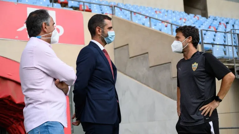 Las dos primeras victorias de la UD Almería en la Liga SmartBank alimentan la ilusión de una ciudad que desea ver al equipo de fútbol en la máxima categoría. En este camino, el alcalde de Almería, Ramón Fernández-Pacheco, ha cumplido con la tradición de acudir al Estadio de los Juegos Mediterráneos, acompañado por el concejal de Deportes, Juanjo Segura, para insuflar ánimos y verbalizar el apoyo de los almerienses a jugadores y cuerpo técnico.