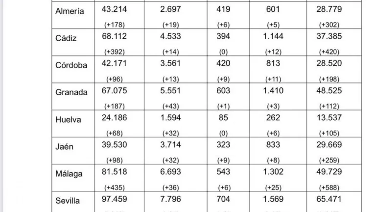 En cuanto a los datos de nuevos positivos y curados, como en los últimos días de manera mayoritaria hay más pacientes que han recibido el alta que nuevos contagiados. 302 ya han pasado la enfermedad. Mientras que 178 inician el proceso tras la confirmación. Esta suma hace que haya 14.435 casos activos en toda la provincia de Almería. La desescalada, en este aspecto, está siendo pero a pasos más lentos de los que fue la escalada en el mes de enero. Cuando se pasó de unos 2.000 hasta tener más de 16.000 activos.