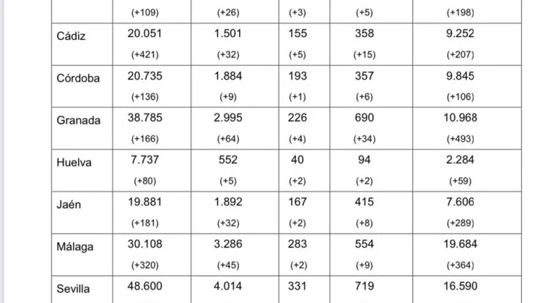 Se podrían considerar como los dos datos, unidos, más favorables de la jornada. Porque si se comprueba el de fallecimientos y hospitalizados, contando en la UCI, se comprueba que han sido cinco las personas que han perdido su vida, en las últimas 24 horas, en la provincia con COVID-19. Lo que eleva ya la cifra, desde que se inició la pandemia a final del mes de febrero, a 186. El segundo dato con menos afectados de toda Andalucía, solamente por detrás de Huelva (94, con las dos de hoy). Por encima, el resto. Con especial indicencia en Granada, que se han contabilizado 34 fallecimientos en las últimas 24 horas. Dato demoledor.