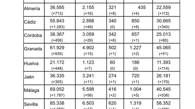 Según los datos facilitados por la Junta de Andalucía, han fallecido 146 personas, 41 en la última semana. Aumenta en 11.321 los casos activos en tan solo un mes.