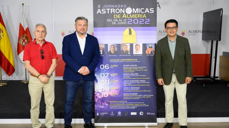 Hasta el domingo, 12 de junio, Almería disfrutará de la décima edición de las Jornadas Astronómicas. Una cita coordinada por el Área de Cultura y Educación del Ayuntamiento de Almería y el imprescindible apoyo del Área de Cultura y Cine de Diputación Provincial, además de la colaboración de la UAL, que volverá a convertir a Almería en centro de conocimiento de ciencia, física y astronomía. Serán un total de siete actividades, divididas en cinco conferencias, una exposición y una noche de observación astronómica. Todas ellas de carácter gratuito hasta completar el aforo.
