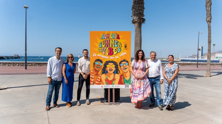 Los atractivos de la ciudad de Almería son de sobra conocidos. La calidad de las playas, los sabores de nuestra gastronomía, la profesionalidad de la hostelería y comercio, el patrimonio y, sobre todo, la hospitalidad. A todo eso, desde el Ayuntamiento de Almería y de manera transversal entre numerosas áreas como las de Cultura, Tradiciones y Fiestas Mayores, Promoción de la Ciudad, Participación Ciudadana, Empleo y Juventud o Deporte, se han agrupado por segundo año más de un centenar de propuestas bajo el nombre de ‘Almería Summer Vibes, el verano de tu vida’ y que ha sido presentado por la alcaldesa, María del Mar Vázquez, acompañada por los concejales Diego Cruz, Amalia Martín, Lorena Nieto, Óscar Bleda y Joaquín Pérez de la Blanca.