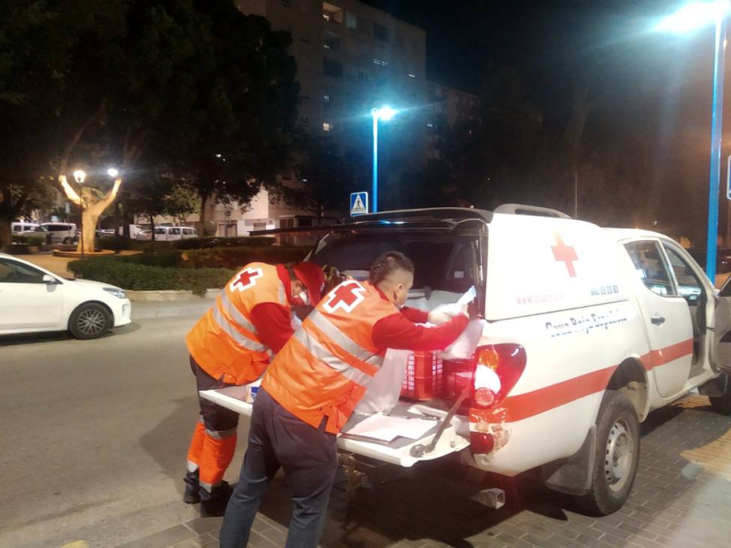 Así trabajan los voluntarios de Cruz Roja Almería ante el frío y la lluvia
