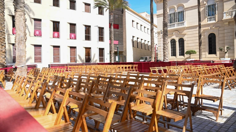 María del Mar Vázquez ha destacado el aumento en el número de sillas que se han instalado en la Plaza de la Catedral, de 450 a 740, y ha supervisado el montaje de las zonas para personas con movilidad reducida, que este año serán tres, al igual que las zonas de paso. “Está todo a punto para que almerienses y visitantes puedan disfrutar de nuestra Semana Santa, que está declarada de Interés Turístico Nacional, y ya solo nos queda invitar a la ciudadanía a disfrutar de una manera responsable de los desfiles procesionales y de nuestra ciudad”, ha trasladado la regidora.