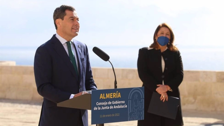 El presidente de la Junta de AndalucÃa, Juanma Moreno, y la consejera de Agricultura, Carmen Crespo, este martes en la rueda de prensa del Consejo de Gobierno en AlmerÃa.