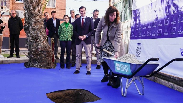 El presidente de la Diputación, Javier Aureliano García, la alcaldesa de Almería, María del Mar Vázquez, acompañados de diputados provinciales, miembros de la corporación municipal y asociaciones de vecinos, han colocado la primera piedra de unas obras que cuentan con un presupuesto de 650.000 euros. Con esta actuación se culmina la inversión en este barrio dentro de la estrategia EDUSI que, además de esta iniciativa, ha permitido la mejora de la Plaza del Obispo Casanova y del entorno del Parque de Los Pinos.