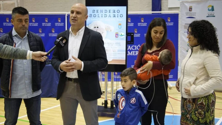 El Ayuntamiento de Fines y Diputación se han unido para la promoción del Sendero Solidario a favor del pequeño Ángel, que se celebra el próximo 8 de enero. El objetivo de esta iniciativa es ayudar a la familia de este niño de Fines, que sufre parálisis cerebral, a financiar el tratamiento que contribuye a mejorar su calidad de vida.