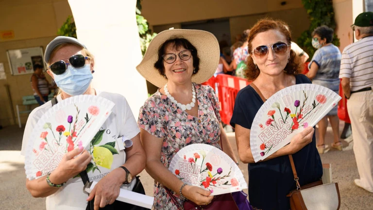 Dos asistentes reparten de forma gratuita tanto abanicos, para aplacar el calor los próximos días, como programas con las actividades de la Feria, para no perder detalle de ningún encuentro, espectáculo y propuesta. El reparto proseguirá con su actividad mañana jueves, 18 de agosto, en horario de 10.00 a 12.30 horas o hasta final de existencias.