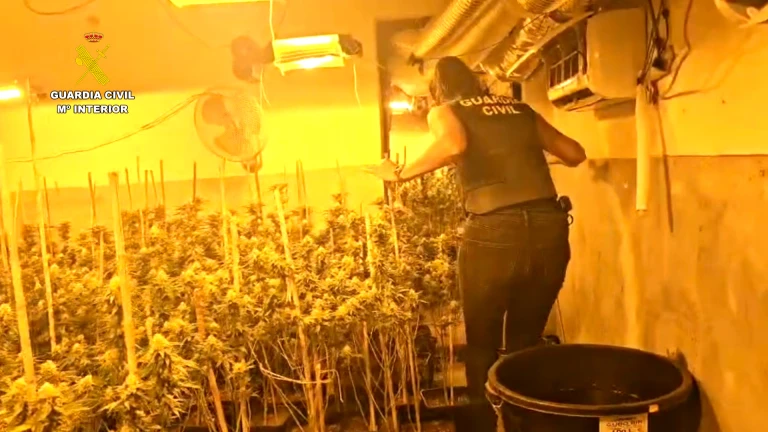 En la plantación, ubicada en el municipio de Roquetas de Mar, que se trata de un cultivo indoor, la Guardia Civil de Almería ha intervenido más de 600 plantas de marihuana, 24 conjuntos de reflectores, 9 compresores de aire acondicionado, 12 ventiladores de pared, 6 extractores de aire, 7 filtros, 2 aires acondicionados portátiles, así como diversos materiales propios de este tipo de cultivos y la neutralización de un enganche fraudulento a la red de fluido eléctrico.