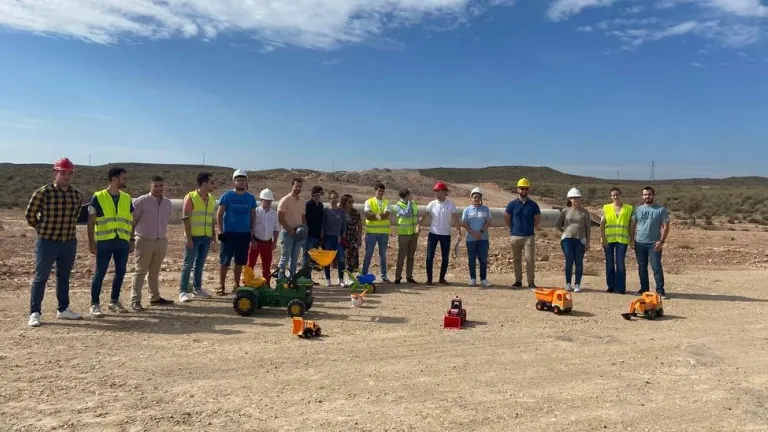 Jóvenes de Nuevas Generaciones de Almería han visitado las obras del AVE en la provincia de Almería, concretamente el tramo donde se creará el Puerto Seco de Níjar, y allí han escenificado con “maquinaria pesada de juguete” la parálisis que sufren todos tramos y el abandono al que el Gobierno de Pedro Sánchez ha condenado a la Alta Velocidad entre Almería y Murcia.