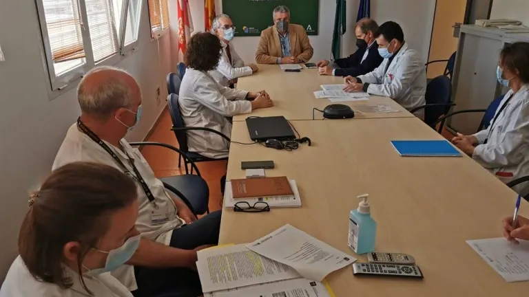El delegado territorial de Salud y Familias, Juan de la Cruz Belmonte, ha presidido la reunión de la ‘Comisión contra las agresiones al personal sanitario’ que se ha celebrado en el Hospital Universitario Torrecárdenas con la presencia de su director gerente, Manuel Vida; Fernando Carrasco Miras, coordinador provincial en esta materia de lucha contra las agresiones al personal de salud; y Gádor Ramos directora de Enfermería del centro hospitalario almeriense y Miguel Ángel Mingorance, subdirector de Enfermería y referente del Hospital Universitario Torrecárdenas en la lucha contra las agresiones a profesionales.