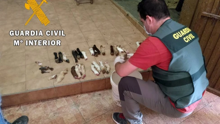 La Guardia Civil encontró patas de cabritos y orejas con crotales, restos de sangre en suelo y paredes, herramientas y recipientes con miembros de animales sacrificados.