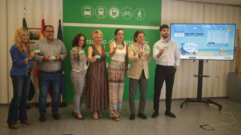El próximo 1 de julio dará comienzo el servicio de transporte a las playas del Parque Natural Cabo de Gata – Níjar, que gestiona el Consorcio de Transporte Metropolitano del Área de Almería. El acto de presentación de este servicio ha tenido lugar en las dependencias de la Entidad de Transporte de la Estación Intermodal de Almería con la asistencia de la delegada de Gobierno en funciones de la Junta de Andalucía, Aránzazu Martín, la delegada Territorial de Fomento, Infraestructuras y Ordenación del Territorio, Eloísa Cabrera, la delegada de Desarrollo Sostenible, Raquel Espín, el concejal de Medio Ambiente del Ayuntamiento de Níjar, Manuel Moreno, la gerente del Autocares Bernardo, Lola Hernández, el director gerente de Consorcio de Transporte, Luis Miguel Carmona, y la directora del Parque Natural Cabo de Gata Níjar, Lucía Tejero.