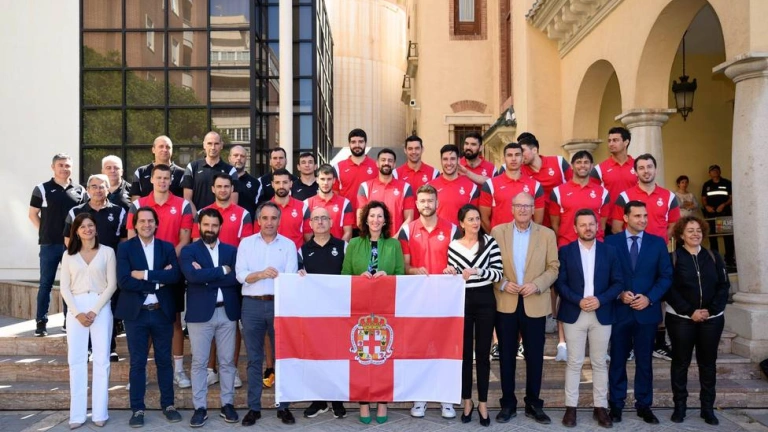 Las instituciones han arropado a Los Hispanos en un acto previo a su encuentro ante la Selección de Dinamarca que se celebrará en el Palacio de los Juegos Mediterráneos.