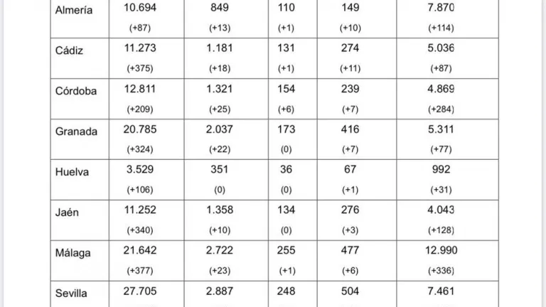 Se trata de la jornada con más decesos en un día desde que comenzó la pandemia. Almería, única provincia andaluza con menos de 100 nuevos positivos.