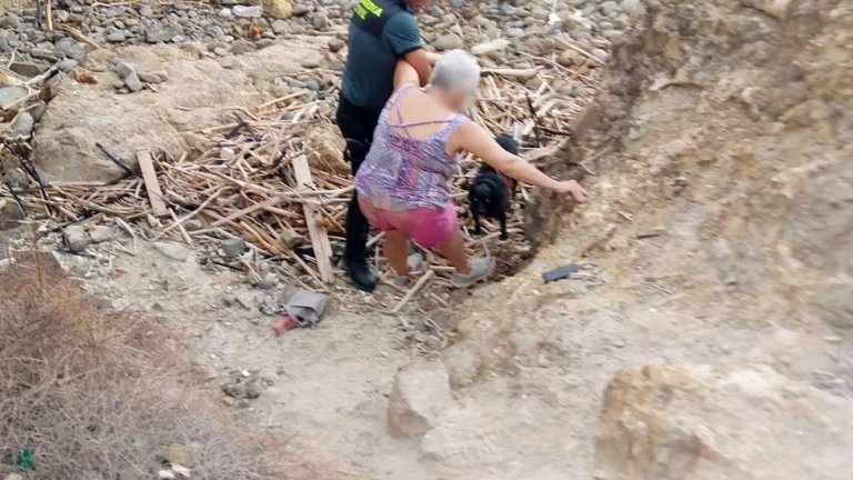 Personal de la Guardia Civil de la comandancia de la Guardia Civil de Almería rescataron a una mujer de 58 años que sufrió una caída por un acantilado mientras paseaba a su mascota en San Juan de los Terreros (Pulpí).