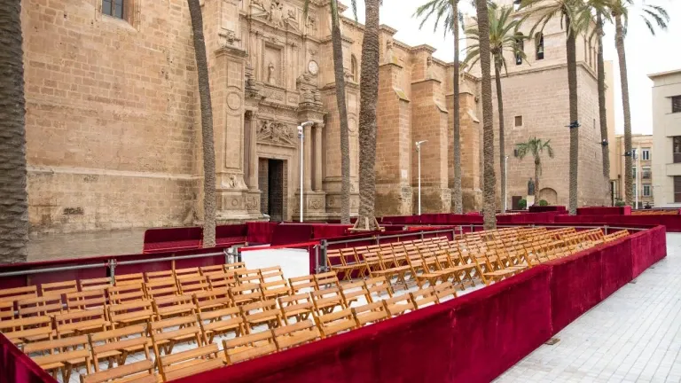 En cuanto al número de asientos, que serán sillas de madera y con respaldo, será de 1.747, un centenar más (664 en el Paseo, 446 en Calle General Tamayo, 110 en plaza Pablo Cazard y 467 más 60 de tribuna de autoridades en Plaza de la Catedral). Las personas con movilidad reducida tendrán a su disposición cinco plataformas: dos en el Paseo, “una de ellas nueva, a petición ciudadana, para que haya a los dos lados”, ha puntualizado la alcaldesa, una en Pablo Cazard y dos en la Plaza de la Catedral.