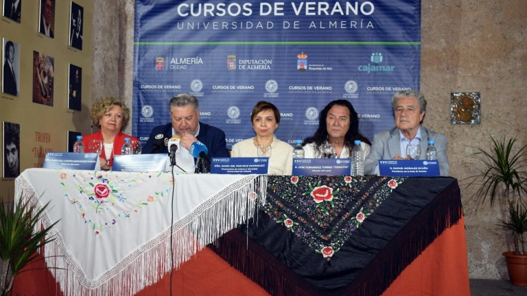 María del Mar Ruiz, vicerrectora de Cultura y Sociedad, ha dado las gracias a Tomatito y su hijo por apostar por los Cursos de Verano de la UAL un año más. “Es uno de los cursos más asentados en el programa de Cursos de Verano y, como les digo, para la Universidad es un motivo de orgullo que Tomatito aceptase ser profesor en este curso. Les invito a que asistan a la inauguración del día 15 de julio y descubrirán con qué devoción y admiración, como tiene que ser, miran los alumnos al maestro y a su hijo”.
