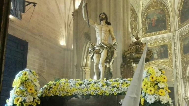 A las dos de la tarde los nazarenos y multitud de fieles se agolpaban en el interior del primer templo de la diócesis para acompañar a Jesús Resucitado en la que sería la última estación de penitencia de la imagen que Federico Collaut-Valera talló, y que desde 1960 ha llevado la alegría de resurrección a los almerienses. Ya lo hicieron antes las imágenes de la Oración en el Huerto, la Columna o el Camino de la Hermandad del Silencio, dejando huérfana a Almería de las imágenes de tan insigne imaginero.
