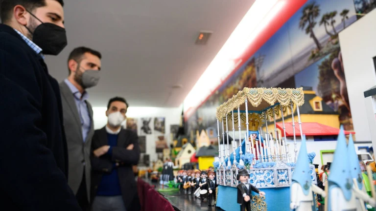 Si en Navidad representaron un Belén, ahora los playmobil se han convertido en los nazarenos, músicos, periodistas y feligreses que participan cada año en la Semana Santa de Almería, gracias a la exposición que ha inaugurado el alcalde, Ramón Fernández-Pacheco, en el Centro de Interpretación Patrimonial (CIP).