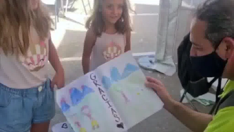 El emotivo gesto de dos niñas con los bomberos que trabajan en el incendio de Sierra Bermeja