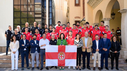Las instituciones han arropado a Los Hispanos en un acto previo a su encuentro ante la Selección de Dinamarca que se celebrará en el Palacio de los Juegos Mediterráneos.