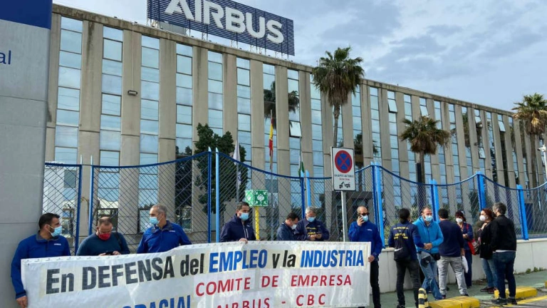 Trabajadores de Airbus protestas por el posible cierre de la planta