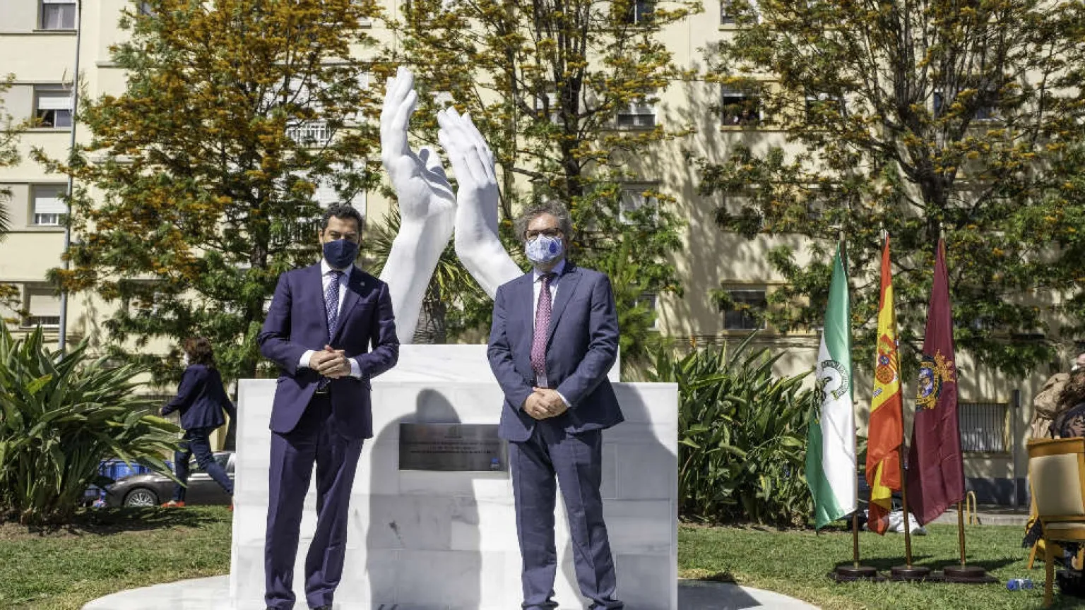 Una escultura realizada en mármol de Macael, inaugurada por Juanma Moreno