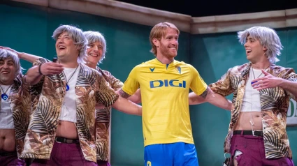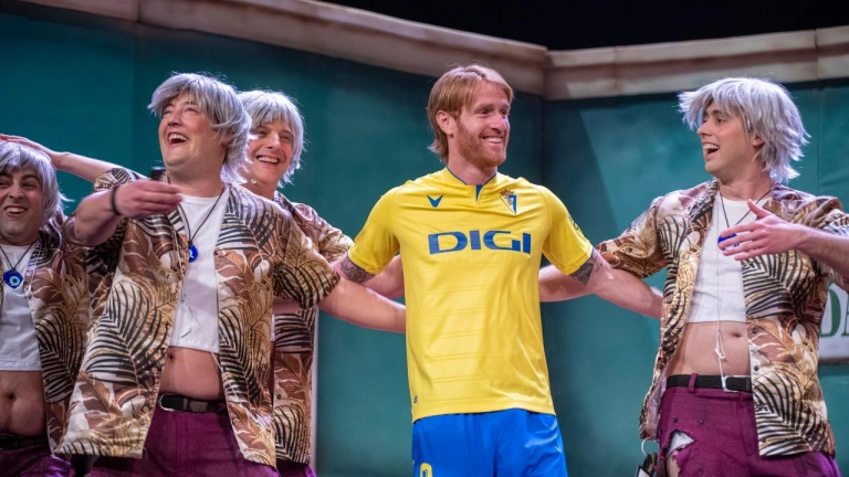 Y en este 2023 no ha faltado la presencia amarilla en el Falla, incluso en el escenario del coliseo cadista. Ha sido con el capitán del conjunto cadista Álex Fernández. El jugador no ha dudado en atender a la llamada de la chirigota de Puerto Real 'To me pasa a mi, los desgraciaitos.