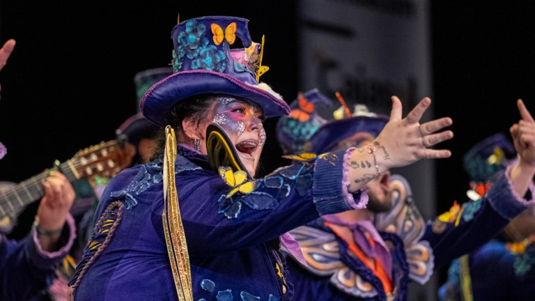 El primer pasodoble de 'Las Mariposas' se centró en ese espíritu de unidad y ayuda. Con versos que evocan la conmoción y el dolor, como «se nos cayó la tarde» y «una chiquilla va perdida andando por las vías y la chiquilla es de Punta Umbría», la comparsa conecta la tragedia de Adamuz con la empatía y el sentimiento de comunidad que se vive en cualquier rincón de España. El estribillo, «Adamuz grita nuevo España… El pueblo salva al pueblo», resume el mensaje central.