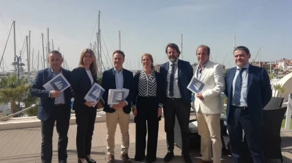 El director general de Puerto Sherry, Enrique López-Bosch, acompañado del alcalde de El Puerto, David de la Encina, el vocal de Vela Ligera del Club Náutico Puerto Sherry, Rafael Martín-Prat, y el director de Área de Negocio de CaixaBank, Luis Llerena, ha presentado hoy en el Hotel Puerto Sherry esta fuerte apuesta por el deporte de la vela, que según ha destacado López-Bosch “situará a Puerto Sherry y, por tanto, a El Puerto de Santa María y a la Bahía de Cádiz, en el mapa de la elite náutica a nivel mundial”.