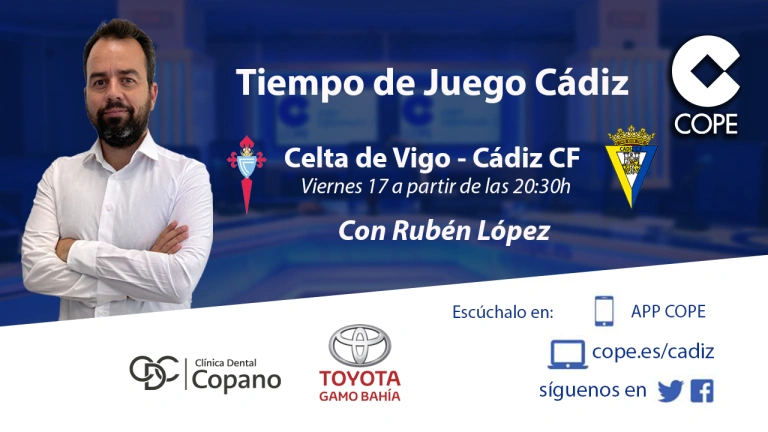 Te contamos el Celta - Cádiz desde las 20:30 horas en Tiempo de Juego Cádiz. Todo el partido, la previa y las reacciones del encuentro en cope.es/cadiz y en la APP de COPE eligiendo Cádiz.